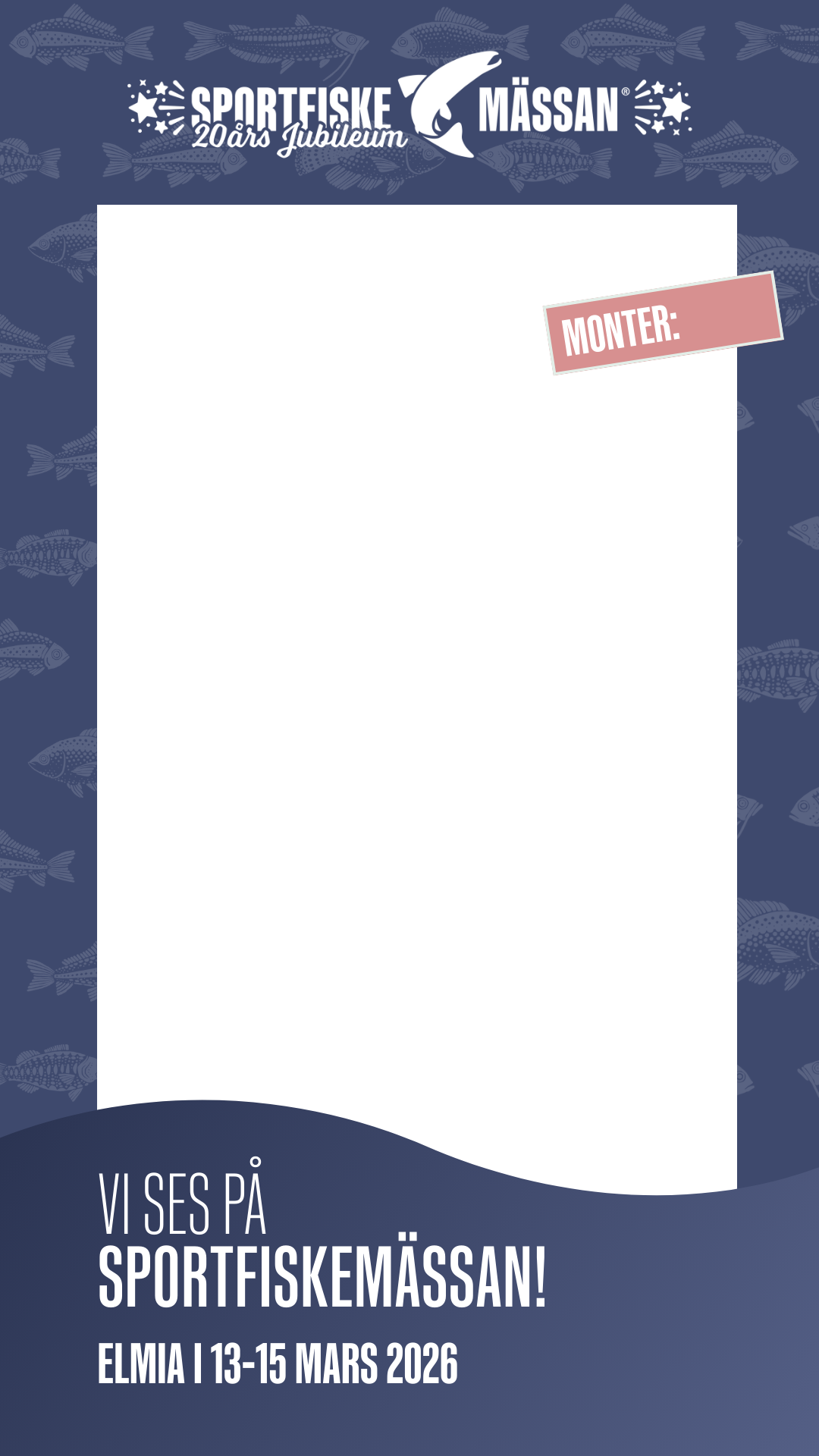 Som utställare och partner räknar vi med att ni maximerar möjligheterna som denna mässa skapar genom att bjuda in besökare och sprida ordet om Sportfiskemässan i era kanaler och nätverk.